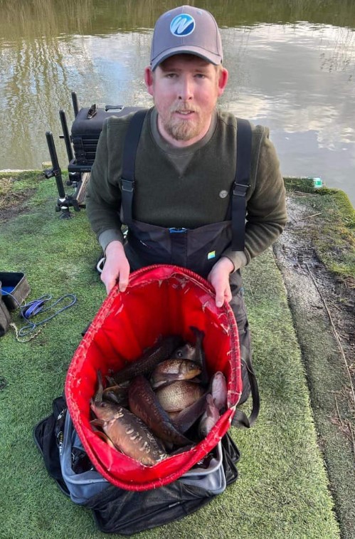Daniel Storey drew peg 11 and also fished two long lines either side of the tree on the far bank,also fished his margins to weigh in 74lb 14oz for second.