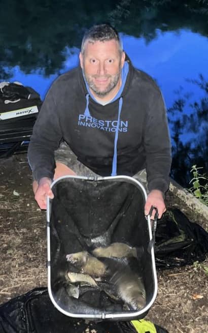 Nick Coote drew peg 34, Nick had a fun night playing with the lakes Carp! But managed two lovely big Bream and bits to take third with 9lb.