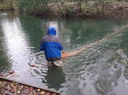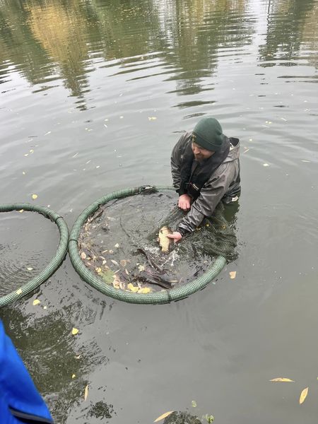 On a cold and damp Wednesday in November, it was good to see the enthusiasm of several ordinary members and committee members help out Mainstream Fisheries [the contractor] both in the water and on the bank. Special mention should be made of Dinan Gunawardena and Graham Carter, who spent most of the day in the water, dragging the very heavy net around.