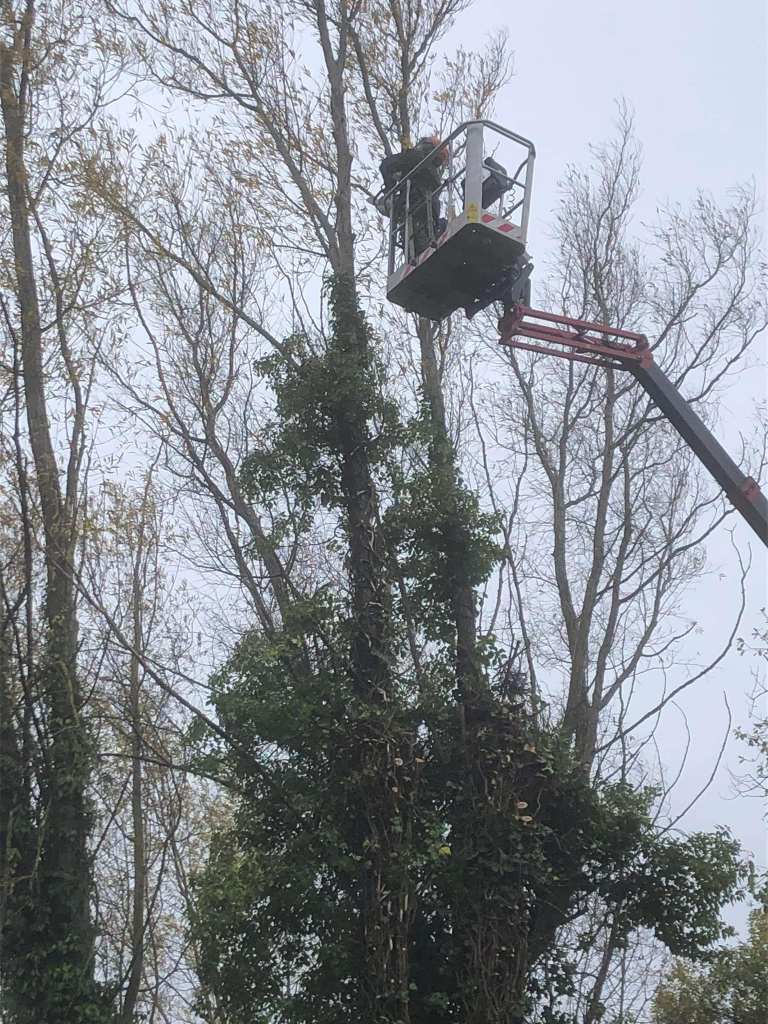 Shortly after the netting exercise, the club hired a 3.5 tonne ‘cherry picker’ and our in-house arborist used this whizzy machine to remove or ‘high coppice’ several damaged or over-hanging trees around the lake and in the carpark area. This was the culmination of a