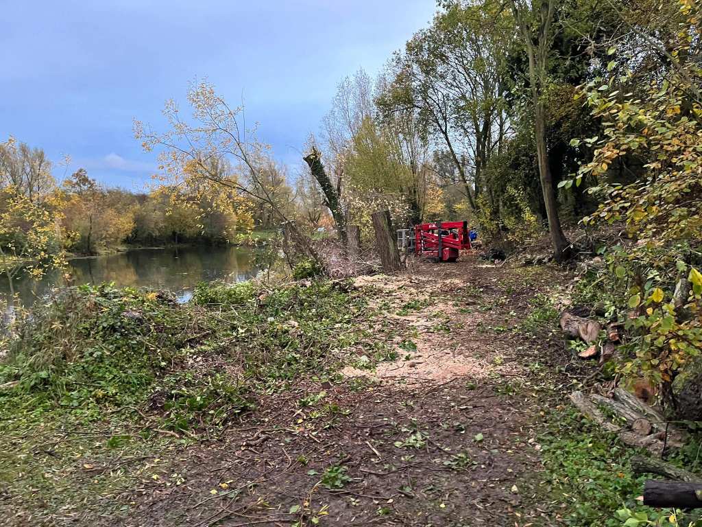 long-term project to remove and thin out the excess trees around the lake. This has improved airflow around the lake and also reduced the amount of willow fluff this spring. The exercise entailed a huge amount of work by the whole team on the ground, as well as in the air, to clear and subsequently tidy and dispose of the removed branches and tree trunks. Sam Robinson and Dennis Gowlett coordinated the work and did a fantastic job. The very wet weather has delayed the removal of some of the fallen branches and trunks around pegs 32 and 33. Hopefully as things dry out a bit, this will be finalised.