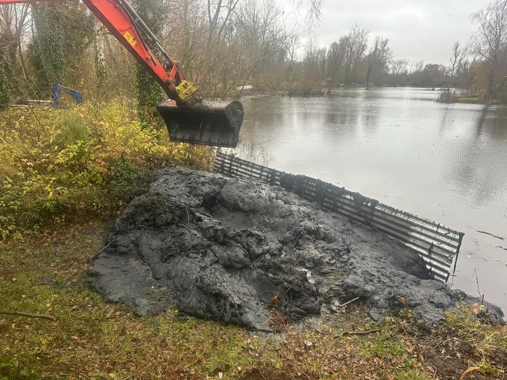This year the committee decided to invest a significant amount of the club’s resources in de-silting the lake. The lake was closed for a period to allow for the preparation of the banks and access to allow a ‘digger-boat’, which over a week removed in excess of 150 tonnes of black silt and decaying weeds and deposited it carefully around the prepared banks. Lime was then added to balance the pH level of the water and generally ‘settle’ the lake down. Tony Holmes and his team of volunteers have put in many hours of effort, which already seems to be paying dividends. As with Bordeaux, the wet weather this winter has delayed the final clearing up, but with water levels now dropping, the banks are being firmed up, with a significant amount of new turf being laid.