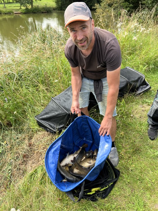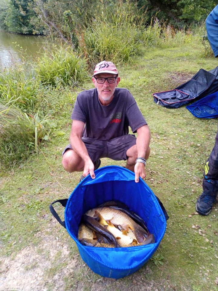 Mark Roscoe fished to his usual high standard to be top rod with 110lb 09oz from peg 25. Mark Evans was not that far behind in the next-door peg, with 99lb 15oz. Good to see them taking a break from the Ouse Summer League and that their still-water skills have not been blunted by fishing on the river.