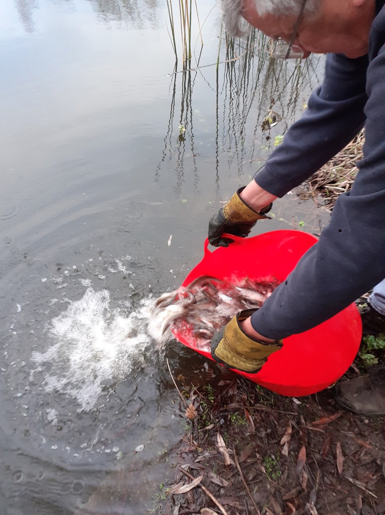 A fruther 3000 of the mixed bag were placed directly into the Main Pit. This mixture did include aa number of bonus extra sized fish, courtesy of the supplier.