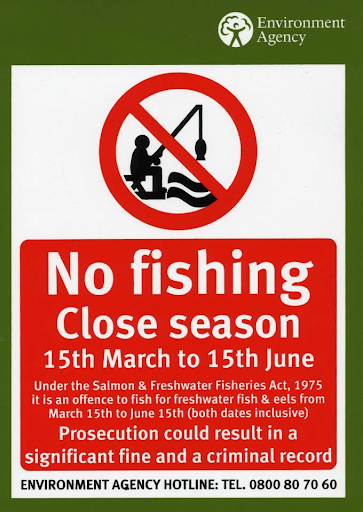 The annual coarse fishing CLOSE SEASON is now in operation.