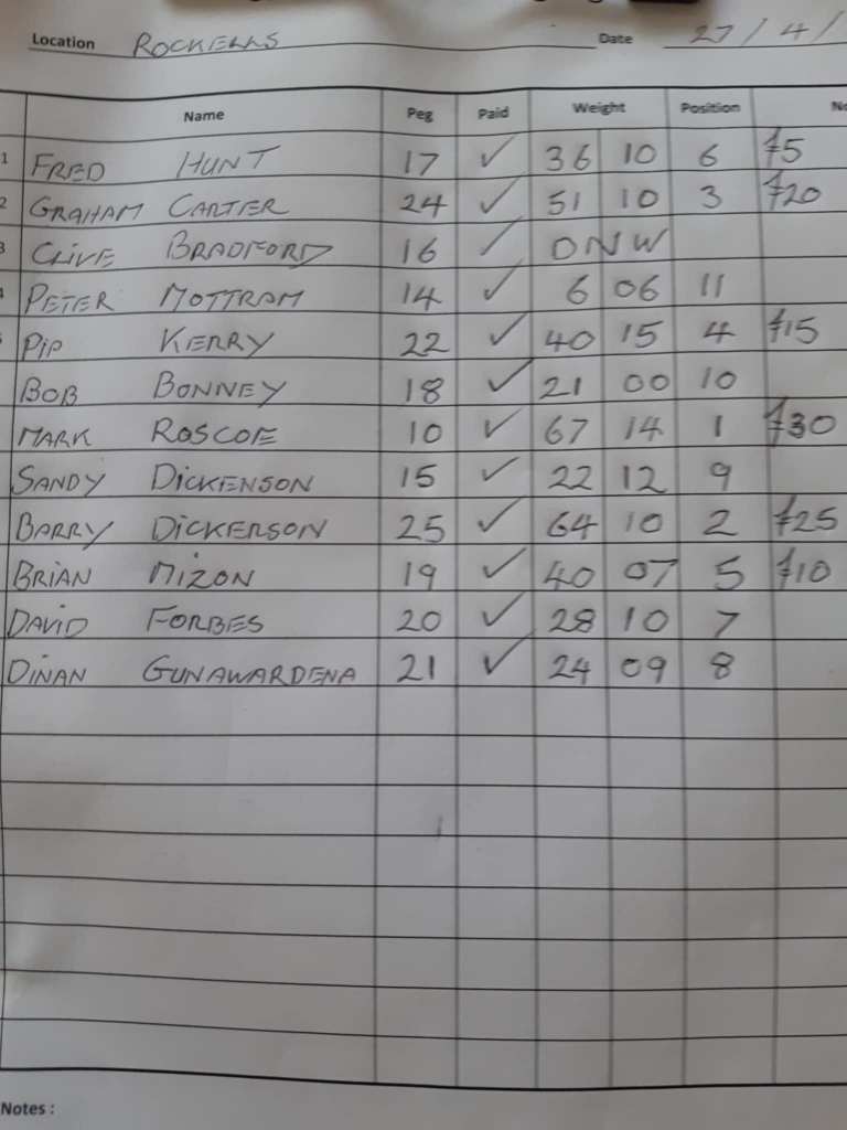 Quite tight for the frame. Well done all who fished and thanks to Fred for a well run match!