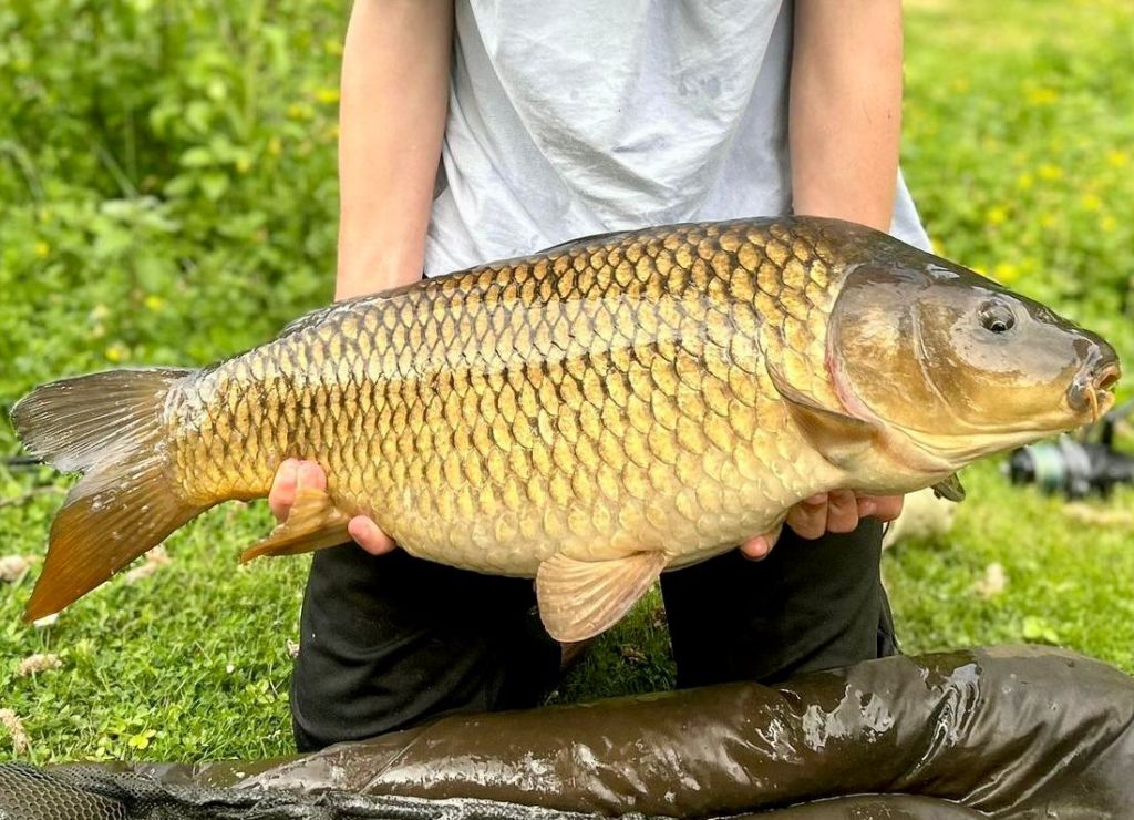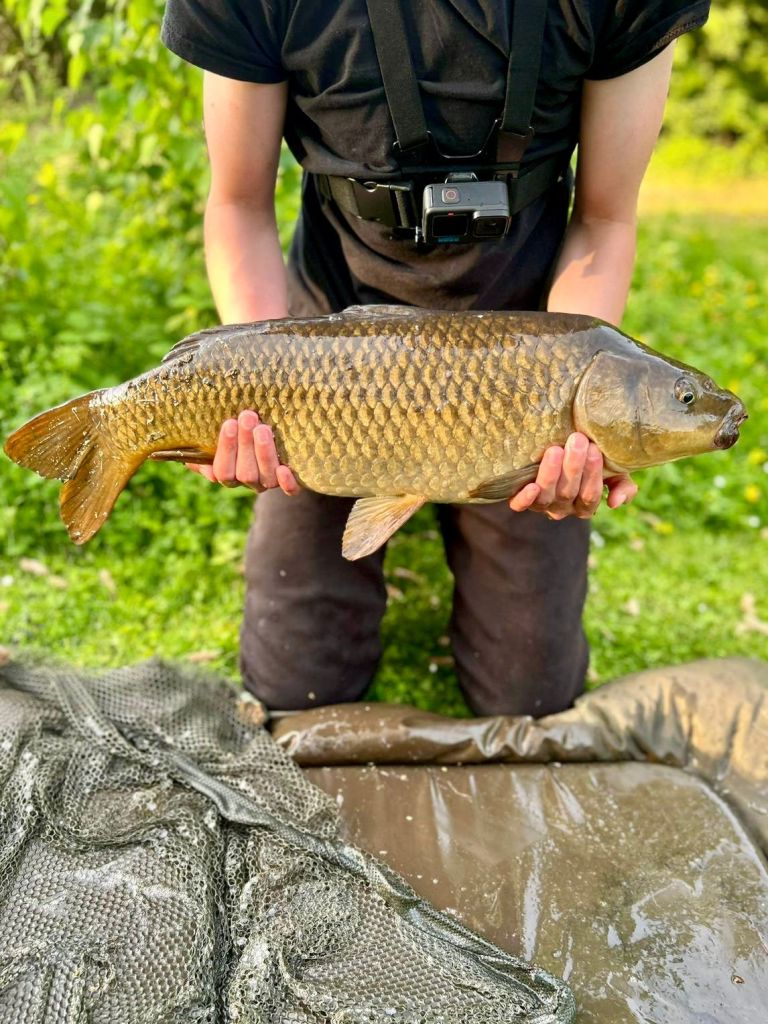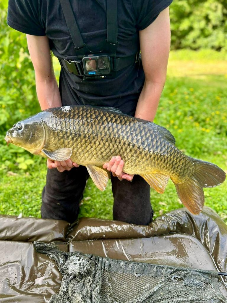 They bagged one of the ‘target fish’ – ‘The Reeve’ – only the second time it has been caught since being put in the lake. Tipping the scales now at 23lb, it has added three pounds in three months. Even allowing for ‘scales rounding’, this is an exceptional weight gain, possibly partially explained by currently carrying some spawn?
