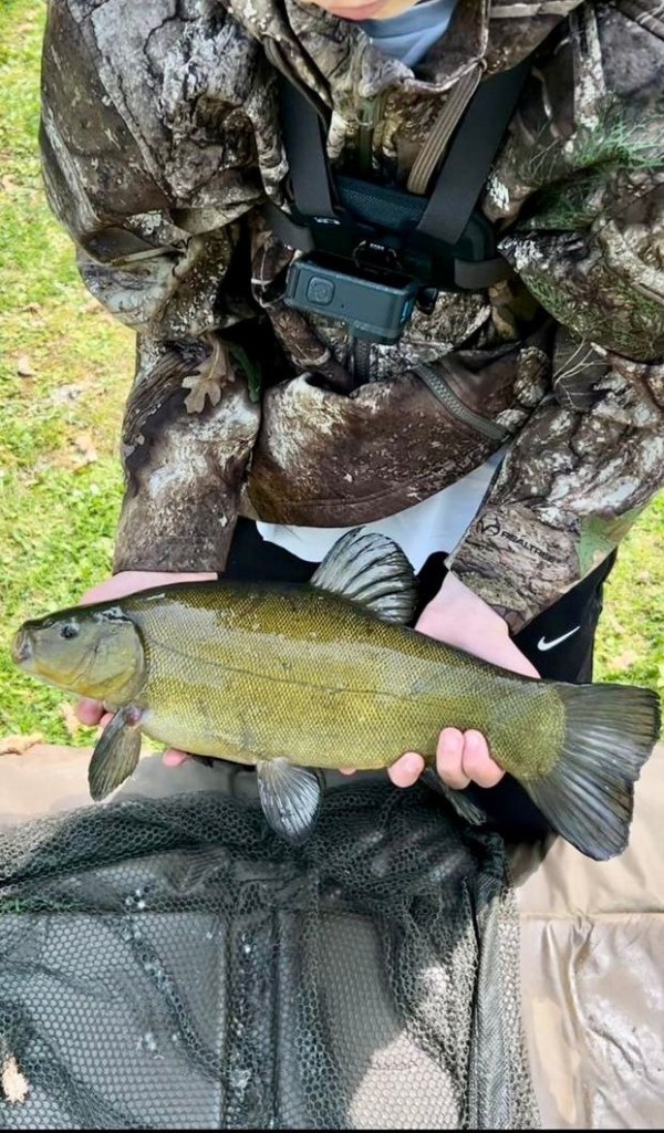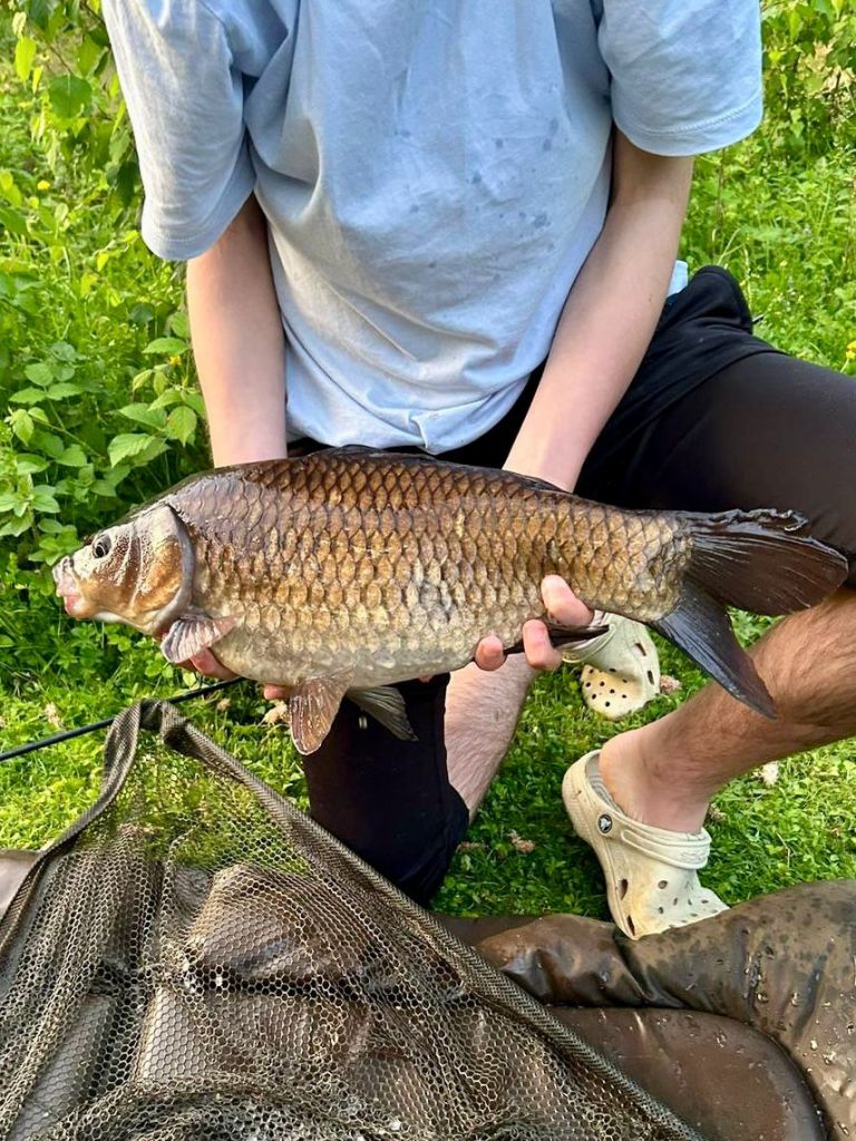Not content with landing the biggest fish in the lake, the lads also snared six other great looking carp, a hefty F1 and a lovely 4 1/2 lb tench.