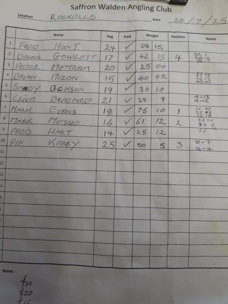 Fred Hunt supplied our pictures, and wanted to thank Mark Evans and Peter Mottram for their help during the weigh-in. The results sheet is shown below as usual…..