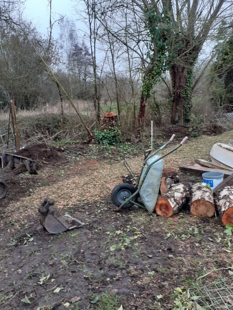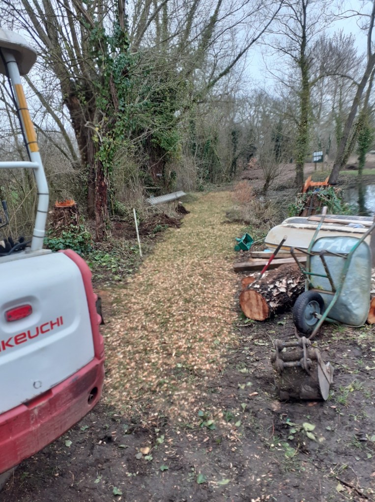 Conifer mulch has been laid over the turned over area and along the path, with more of this is to follow. This is to help soak up some of the excess water that is beginning to seep up as the levels rise after all the recent rain.