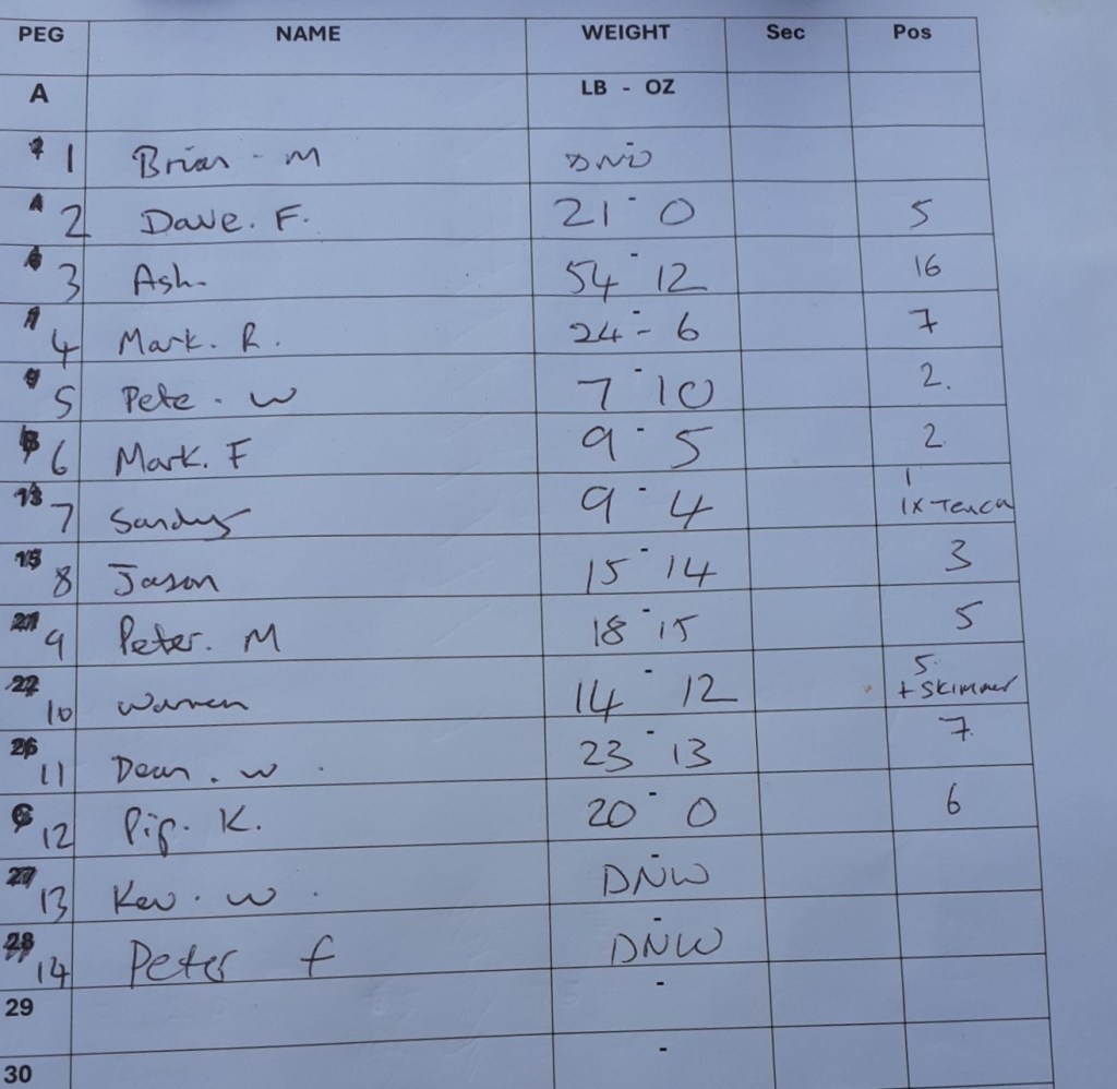 2nd Mark Roscoe – Peg 4 – 24lb 06oz [Lake peg no 3]